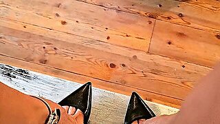 Hamis mellek, nejlon, Punci nyalás, magassarkúban